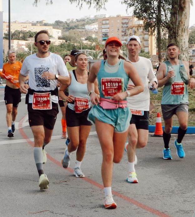 Maike hatte sich die Eigenheiten der Strecke und die Positionierung der Versorgungsstände durch die Stadt und entlang der Costa del Sol gut eingeprägt. Da sich die Streckenführung ohne große Steigungen präsentierte, sollte ihr Vorhaben sicher gelingen. Sie startete gut, konnte sich während des Rennens immer in einer Gruppe mit anderen Läuferinnen und Läufern aufhalten und konnte so ihr nötiges Tempo gezielt durchlaufen.